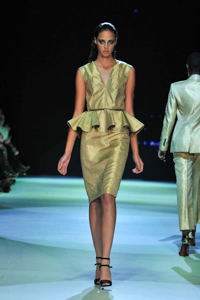 I am in love with Arthur Mendoça’s Spring/Summer 2012 collection. His return-to-runway collection, which consisted of a variety of different pieces including flowy dresses in all lengths and styles, was, according various media including Global News, influenced by Cleopatra. While I didn’t see it (either from a textbook or film perspective), there was definitely something regal and elegant about the looks. My top picks are a black floral below-the-knee dress (there’s also a shorter shift dress made from the same pattern), a white, purple and black dress with a simple ribbon belt as well as a flowing, burnt orange (orange shades seem to be a to be a theme for the upcoming season), one shoulder dress, despite it being more of a fall colour than spring. The gold peplum dress seemed to get a lot of love, especially online. However, unless one is tall and slender, it would just make a person look wide. Fashion isn’t just about what one sees on the runway, especially if most of the designer’s collection targets the general public.