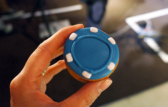 Gingerbread sandwich cookie made to look like a casino chip