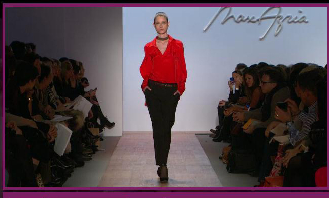 As the collection was mostly of neutral colours, one piece that really stood out was the red blouse (above) towards the end of the show. In a sea of blacks, olives and tans, the blouse really popped out, especially being paired with black pants. Today’s show was definitely a 180 from Thursday’s BCBGMaxAzria collection, which consisted of mostly unwearable pieces that looked (reasonably) good only on the runway. No drop waists or low waisted belts here, which is good news for those of us who are not tall and skinny. Definitely looking forward to fall 2011.