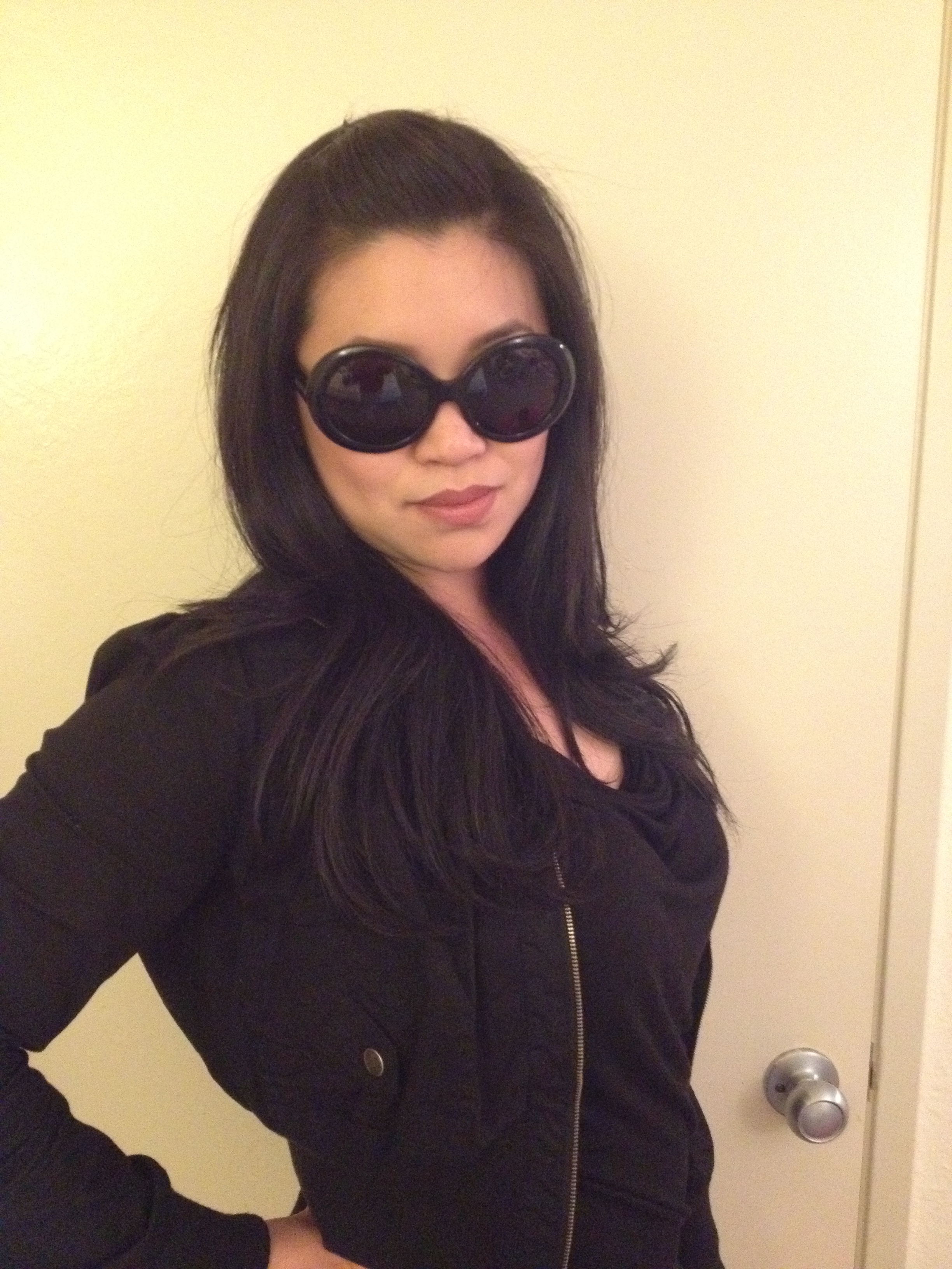 The author in MEGUMI-O glasses attempting a Mary-Kate Olsen look (unsuccessfully)